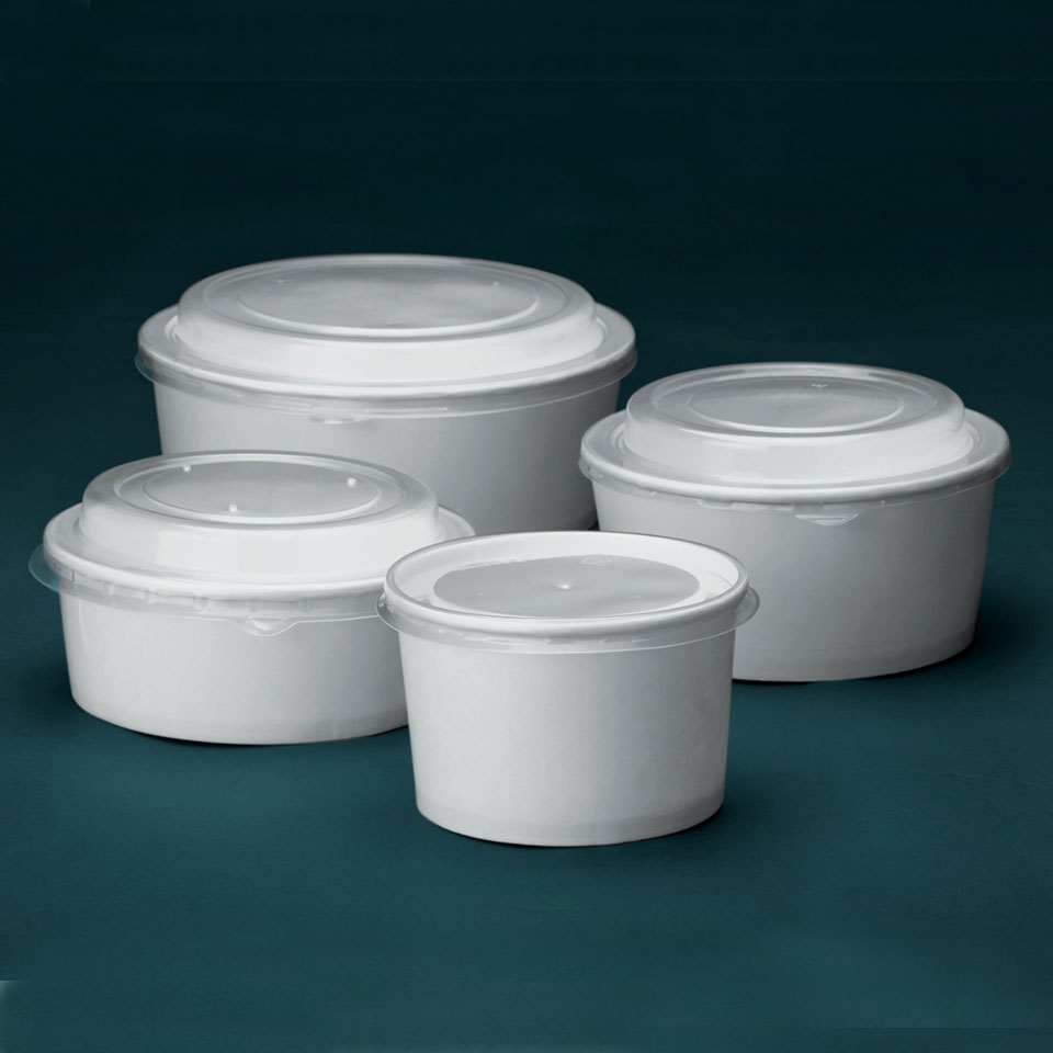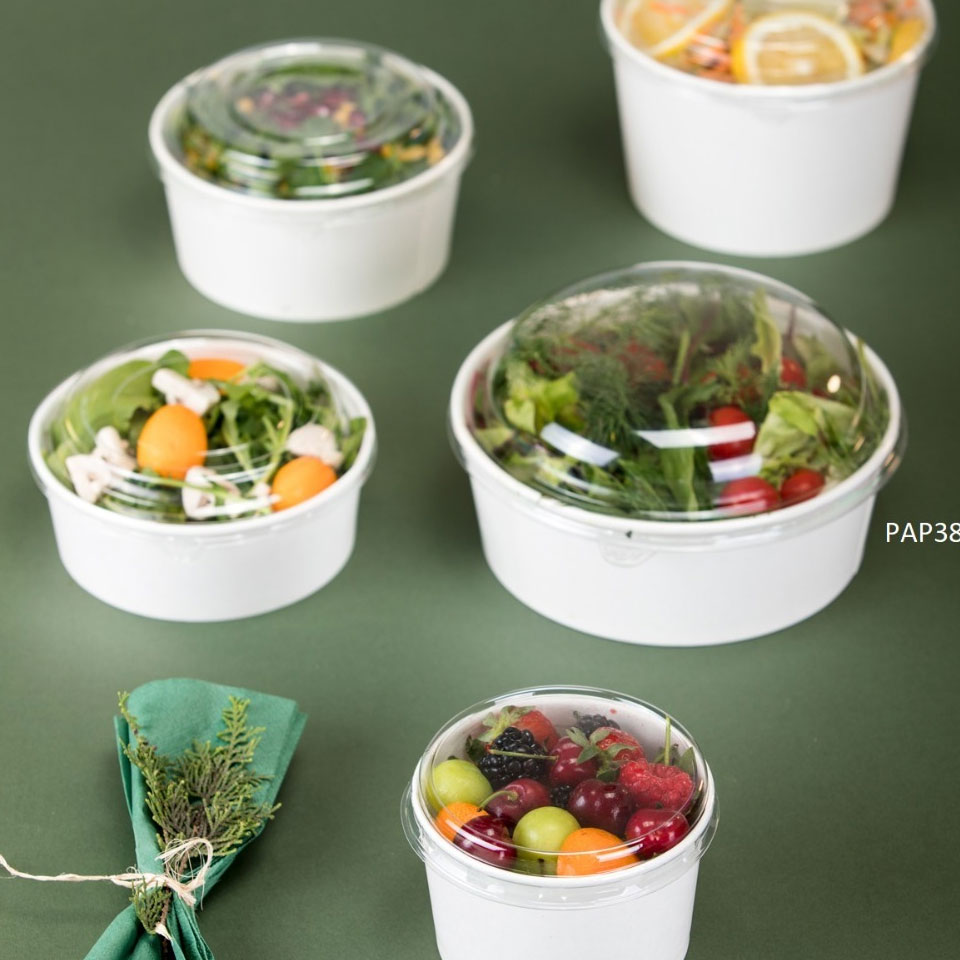 We make production at 6 different sizes as 13oz, 16oz, 20oz, 26oz, 32oz and 38oz. Transparent thermoform lids manufactured from PET and PP raw material for each container are available, we bring a special visuality for salad containers and we carry you one step further from your rivals at the packaging stage of your products through paper and plastic containers.